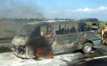 Tài xế thấy khói đã đánh xe vào lề đường, hô hoán để mọi người trên xe thoát ra ngoài. "Mùi khói khét như cháy dây điện từ phía dưới gầm xe bốc lên, ít phút sau ngọn lửa bao trùm toàn bộ đầu xe", một hành khách kể lại.